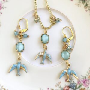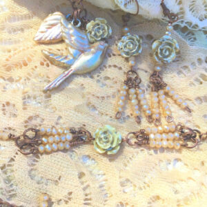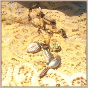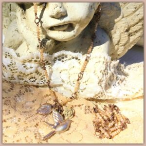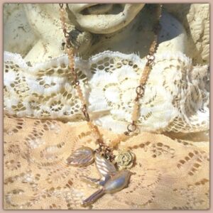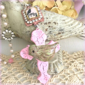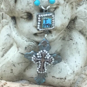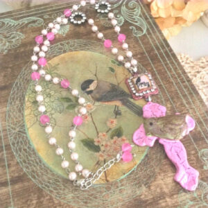“Grandma’s Prayers” Clay Cross and Clay Bird Necklace-Pink
