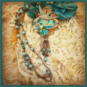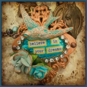 “Believe In Your Dreams” Clay Metal Bird Lock Plate Artisan Necklace