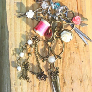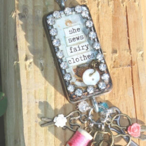 “She Sews Fairy Clothes” Altered Embellished Domino Artisan Necklace