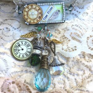 “Time Flies” Altered Embellished Domino Artisan Necklace