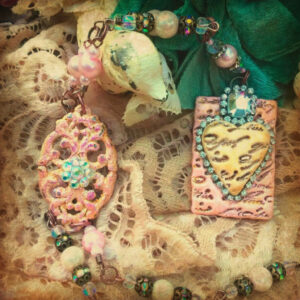 “Antique Hearts” Clay Calligraphy Artisan Necklace