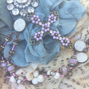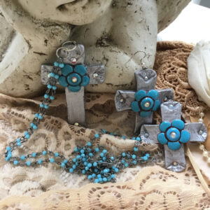 “Faith Daisies” Necklace Clay Cross and Daisy Beautiful shimmery Handcrafted Chain