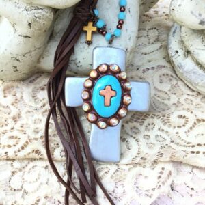 “Leap of Faith” Clay Cross And Cabochon Artisan Necklace