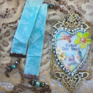 “Bless Our Nest” Clay Metal Graphic Artisan Necklace